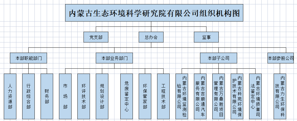 內(nèi)蒙古生態(tài)環(huán)境科學研究院有限公司是內(nèi)蒙古環(huán)保投資集團有限公司的全資子公司,成立于2001年,注冊資本金5000萬元。公司長期致力于環(huán)境服務(wù)和環(huán)境資源的可持續(xù)發(fā)展,是內(nèi)蒙古自治區(qū)生態(tài)環(huán)境保護服務(wù)領(lǐng)域的龍頭企業(yè)。公司作為引領(lǐng)全區(qū)的創(chuàng)新型環(huán)保企業(yè),公司團隊包含環(huán)境規(guī)劃、環(huán)境影響評價、流域綜合治理、環(huán)境監(jiān)理、環(huán)境工程、環(huán)保管家、環(huán)保技術(shù)研發(fā)、環(huán)境損害鑒定、環(huán)境監(jiān)測等領(lǐng)域眾多專家級人才。
